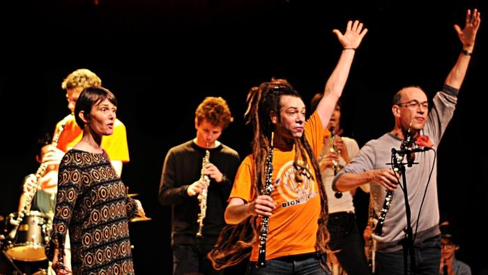 Découvrez des instruments rares dans l'espace public : hautbois, basson, tuba..., comme vous ne les avez jamais vu joués auparavant ! Ce groupe multi-générationnel, de niveaux et d’horizons divers vous fera vivre un show énergique et renversant dans un répertoire actuel et survolté. Vous reconnaîtrez aisément les morceaux qui ne manqueront pas de vous ambiancer en famille !