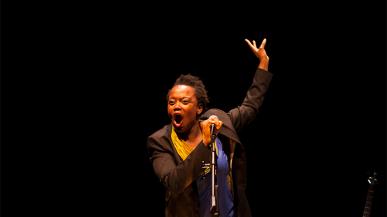 Avec un humour piquant et sa guitare électrique, Alvie Bitemo s’attaque à nos pensées dominantes et colonialistes.