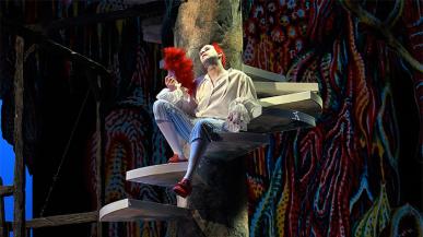 Jean Lambert-wild réapparaît sous les traits d’un incroyable clown en pyjama pour une adaptation du célèbre mythe de Dom Juan totalement dépoussiérée.