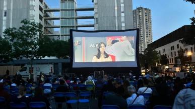 Séance de cinéma à la tombée de la nuit. L'occasion de se rassembler et de vivre un beau moment ensemble sous les étoiles.