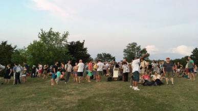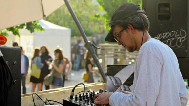 L'Espace Mazagran s’anime sous le signe du street art : des graffeurs peignent le mur de la Gâche pendant que des djs animent l’événement.