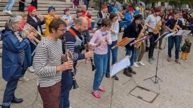 Deux groupes enchaînent les concerts sur la même scène : La Fieffée Fanfare et Harmonie Croix-Roussienne.